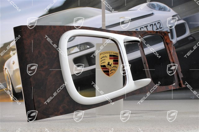 Porsche Cayenne 955/957 Abdeckblende Mittelkonsole, Wurzelholz, Holzpaket Nussbaum Wurzel, dunkel hochglanz.