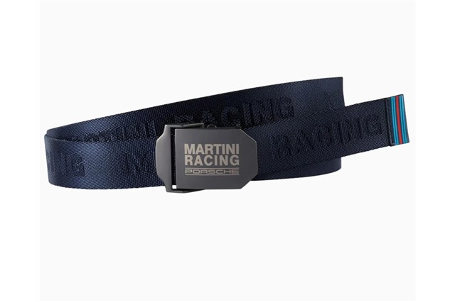 Perfect for racing fans: The modern belt from the iconic MARTINI RACING® Collection impresses with a deliberately clean design, a tone-in-tone woven collection logo, and the iconic MARTINI RACING® stripes on its outer edge. The belt is infinitely adjustable using the high-quality metal buckle with the engraved MARTINI RACING® PORSCHE logo.