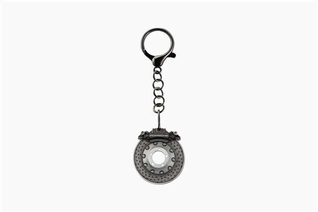 Design, that's guaranteed to keep the pace: Porsche key ring in a faithful replica of a brake disc. The brake disc is rotatable and compatible with all Porsche vehicle keys. O 3.5 cm. Made in Germany.